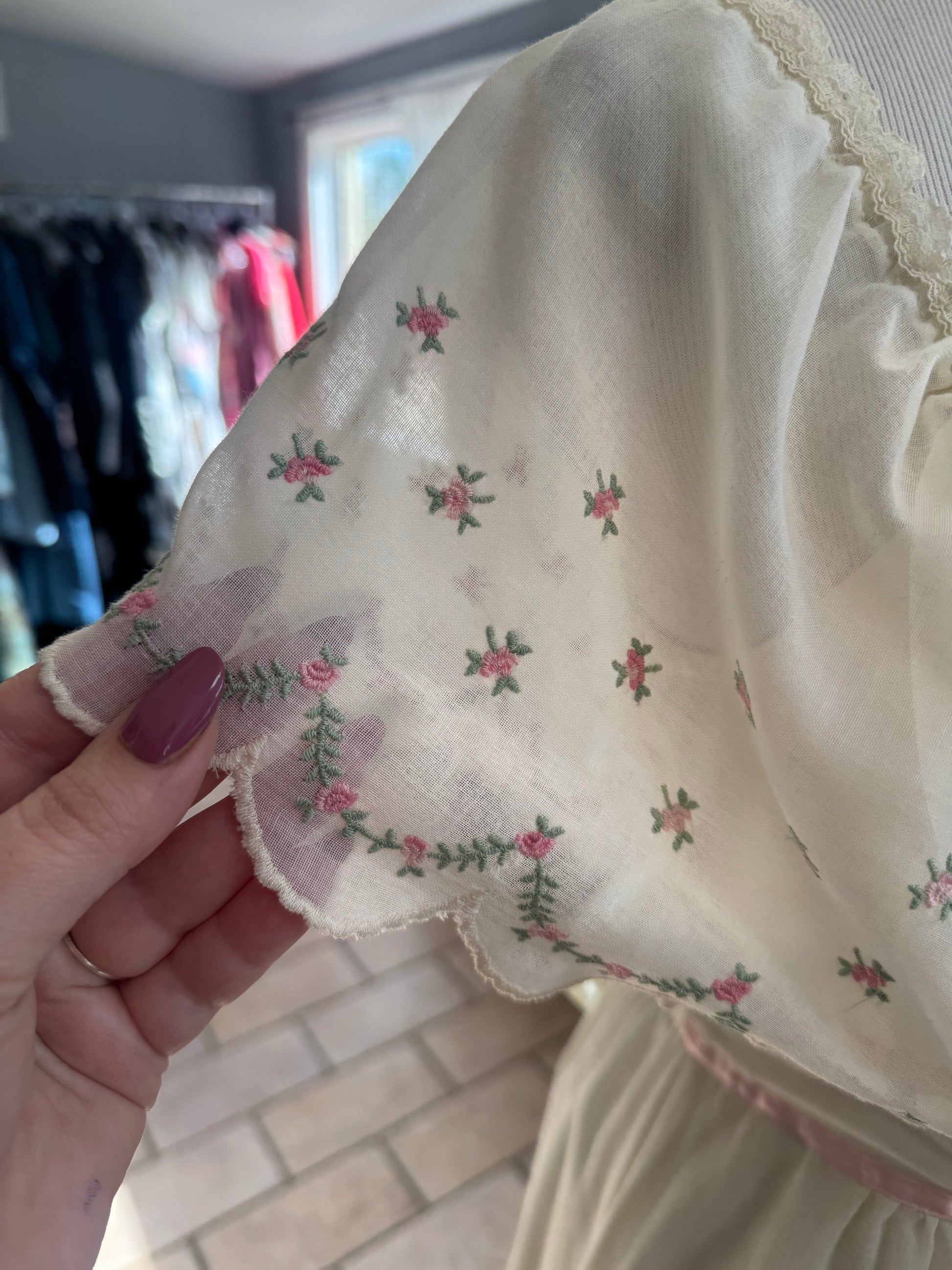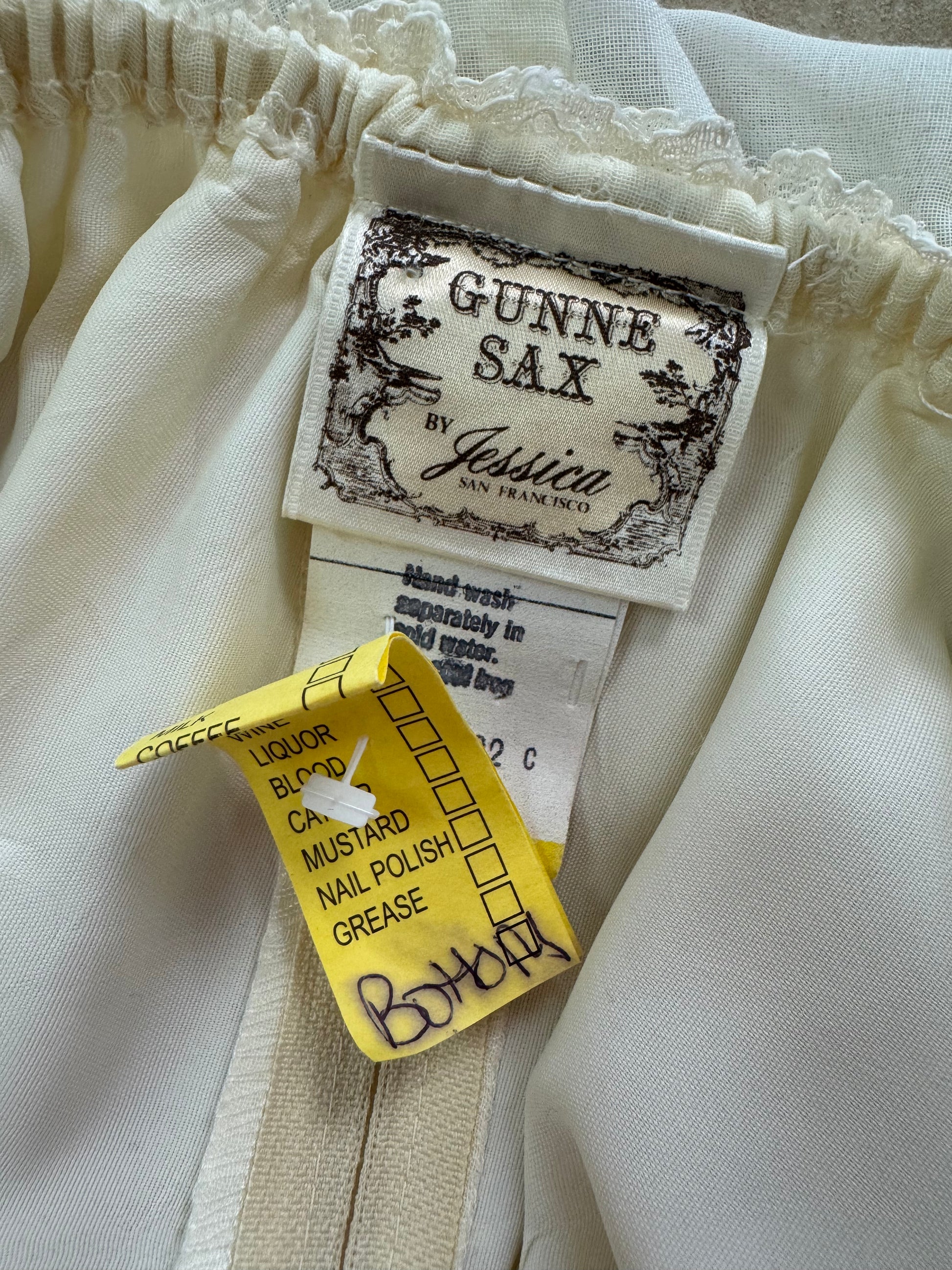 Circa mid to late 1970's from the C. Suzanne's Boutique of Willmar, Minnesota. Purchased new as a wedding dress.